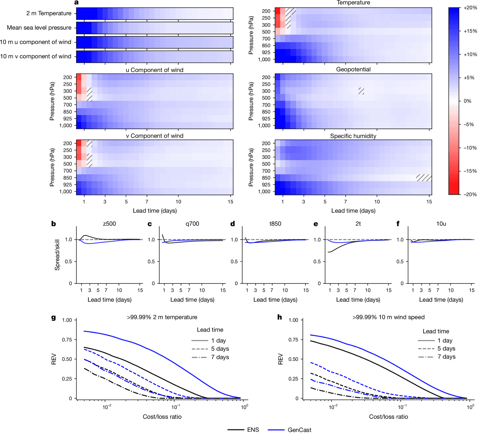 On top of that, beyond CRPS, DeepMind employed an array of verification metrics including Root Mean Square Error (RMSE) of ensemble means, spread/skill ratios and rank histograms for calibration assessment, Brier skill scores for extreme event prediction, and Relative Economic Value (REV) curves that evaluate forecast utility across different cost/loss decision thresholds. For cyclone tracking, they applied the TempestExtremes tracker to evaluate position errors and track probability fields. [4]